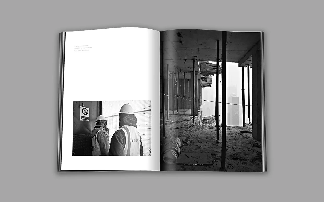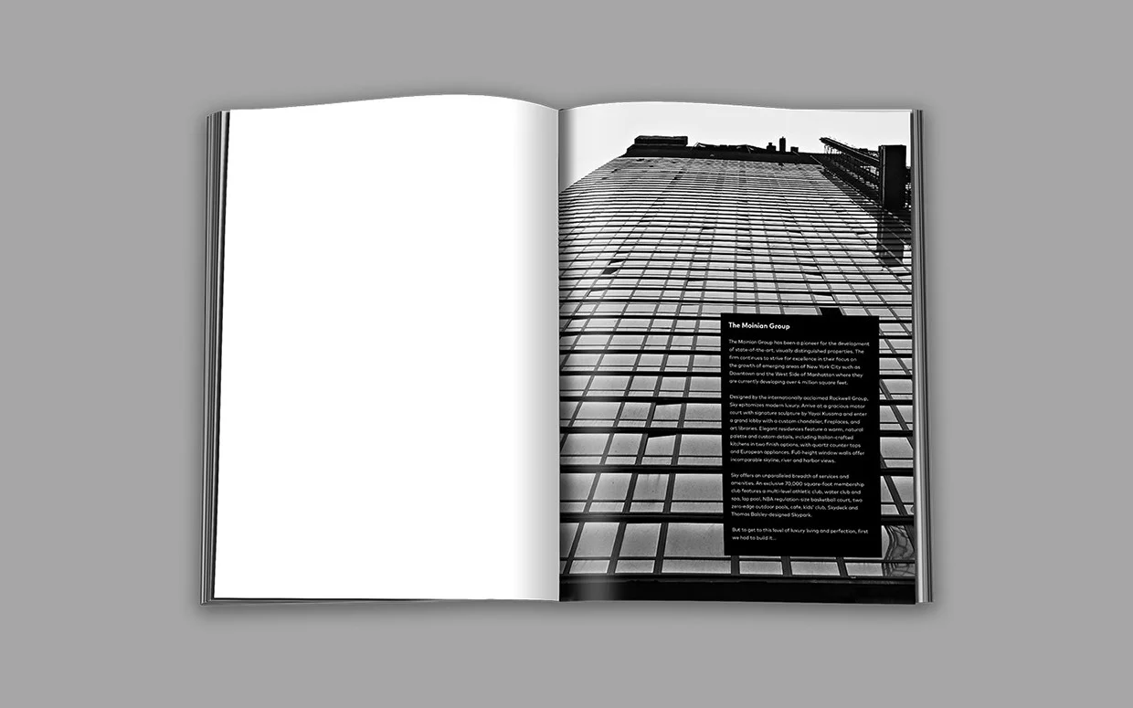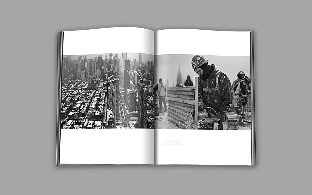 Prior to the official launch and opening of Sky's leasing office, I created a fluid social media, PR and design campaign to seed exposure and awareness of the project. One of the initiatives included sending a photographer to the roof, during a blizzard, to shoot the Union Construction workers in all their glory, with a glossy book sent to investors as well.